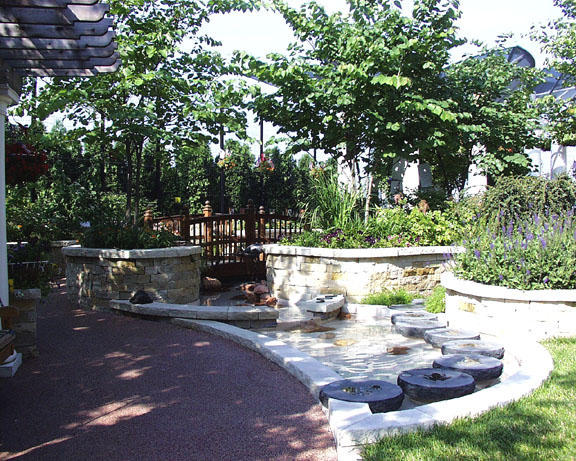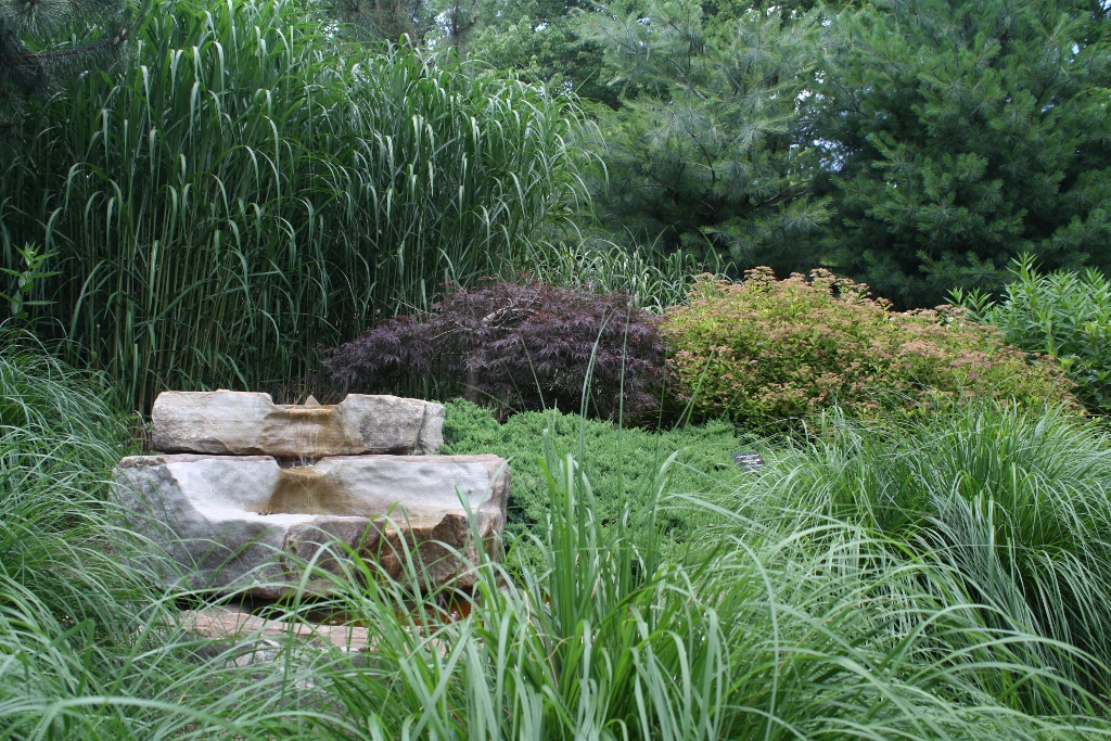 The sound garden includes running water, wind chimes, and plants with leaves that tend to rustle in the wind.