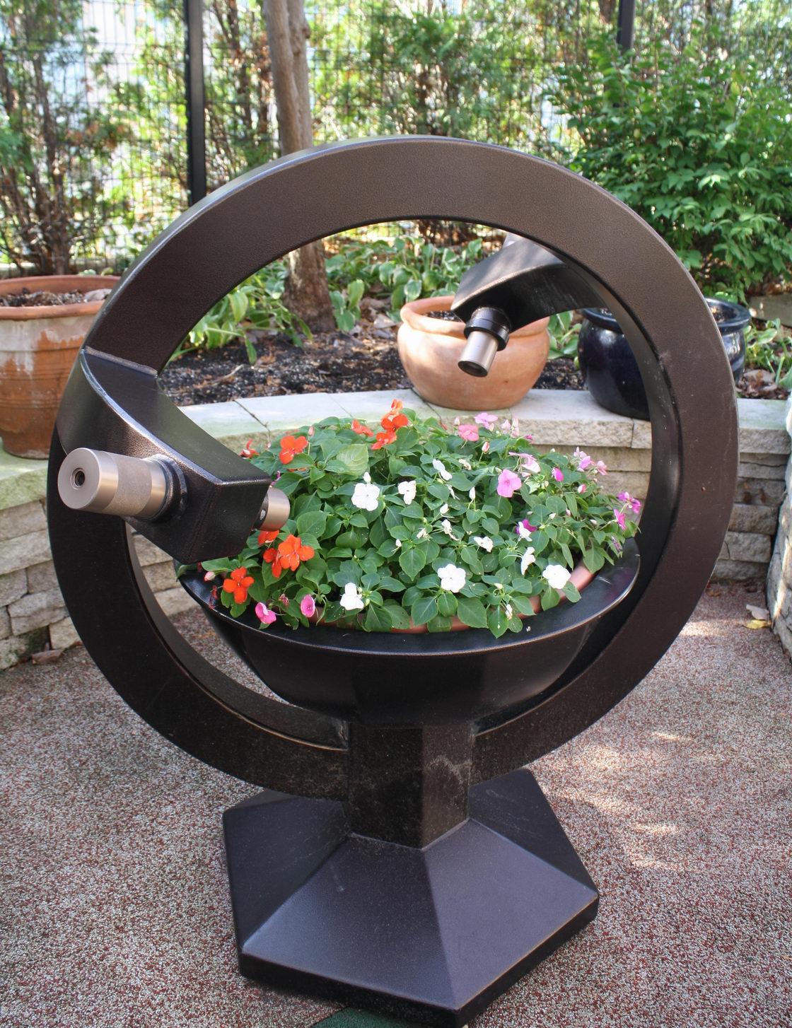 A custom-made planter with kid- and adult- level kaleidoscopes