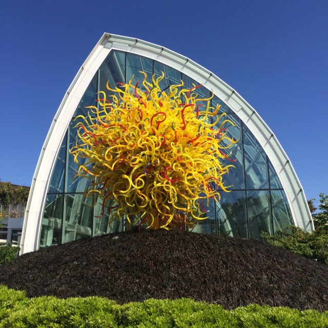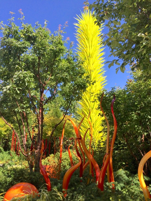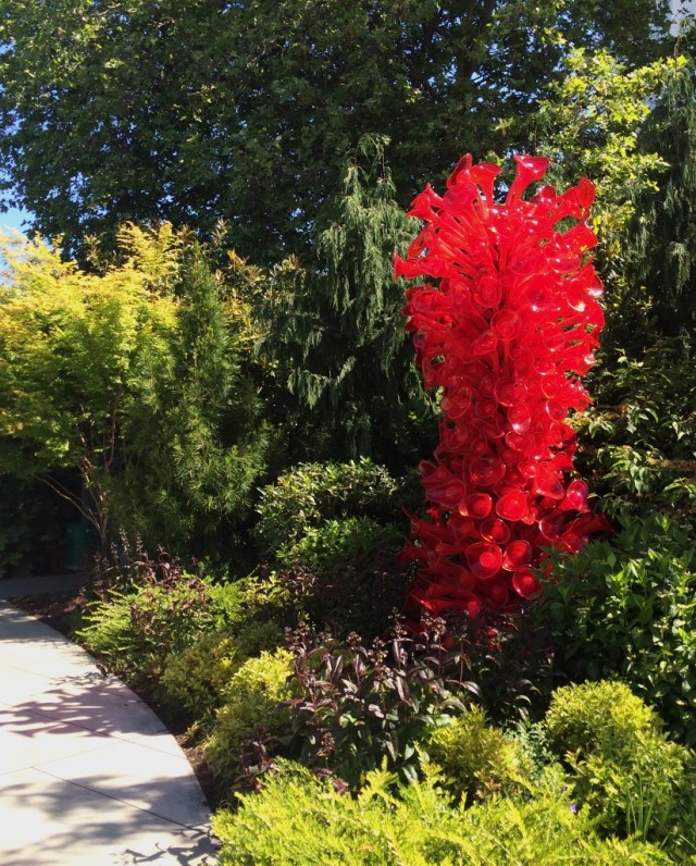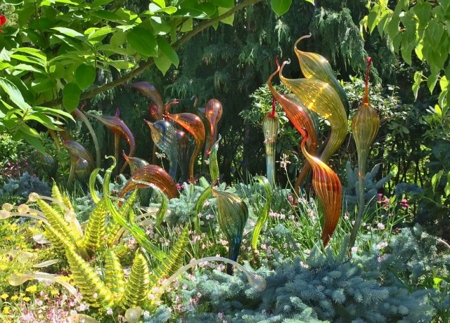 Some may argue that Dale Chihuly’s glass sculptures have become too mass-produced, with many similar-looking pieces displayed around the world. However, each of his garden installations has a unique quality, due to the ways in which the glass pieces are integrated with the landscape. One of the best examples is the outdoor component of the Chihuly Garden and Glass museum in Seattle, since this garden was designed for both sculpture and plantings, effectively combining and balancing the two.