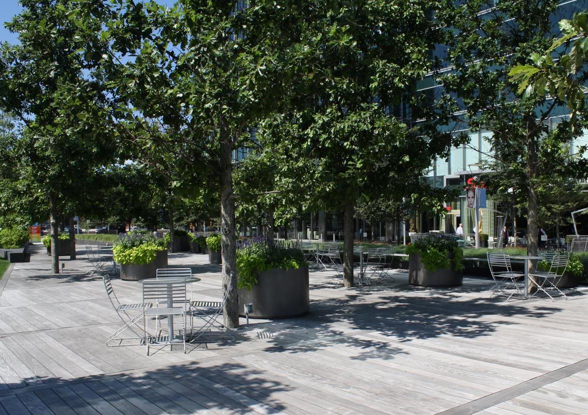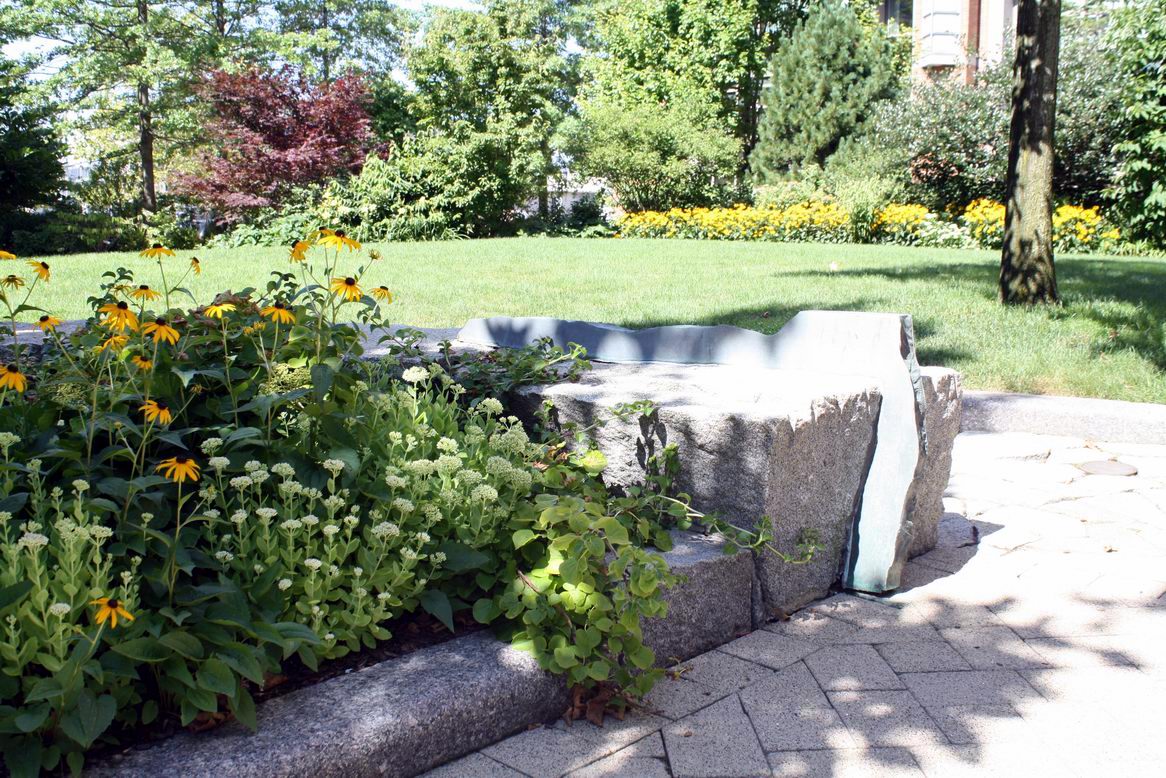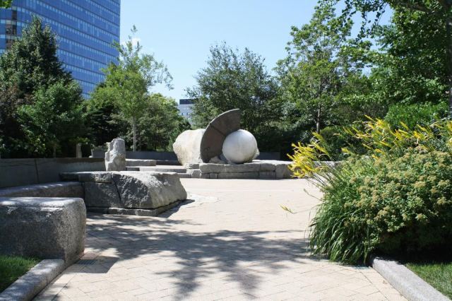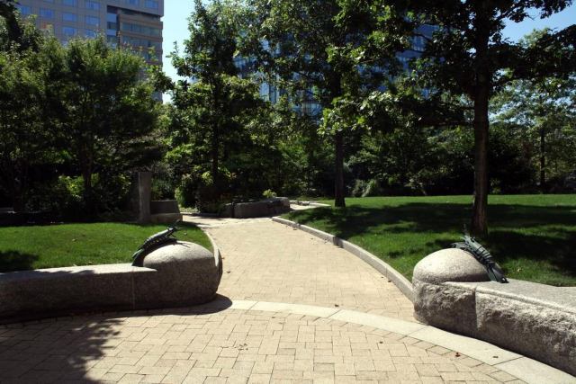 The “Nature Nook” is a delightful natural play space on the grounds of the Boston Nature Center & Wildlife Sanctuary, located in the Mattapan neighborhood of the city. In about eight years since the playground’s construction, the vegetation has grown nicely to form a cozy play space consisting of several “rooms” of activity areas. The playground includes all the important elements of nature-based play: water, sand/dirt, wood, plants, rocks, and hills. Additional features include a stage with seating, planters for gardening, music and art spaces, a building construction area, a gathering (seating) space, and a boardwalk.