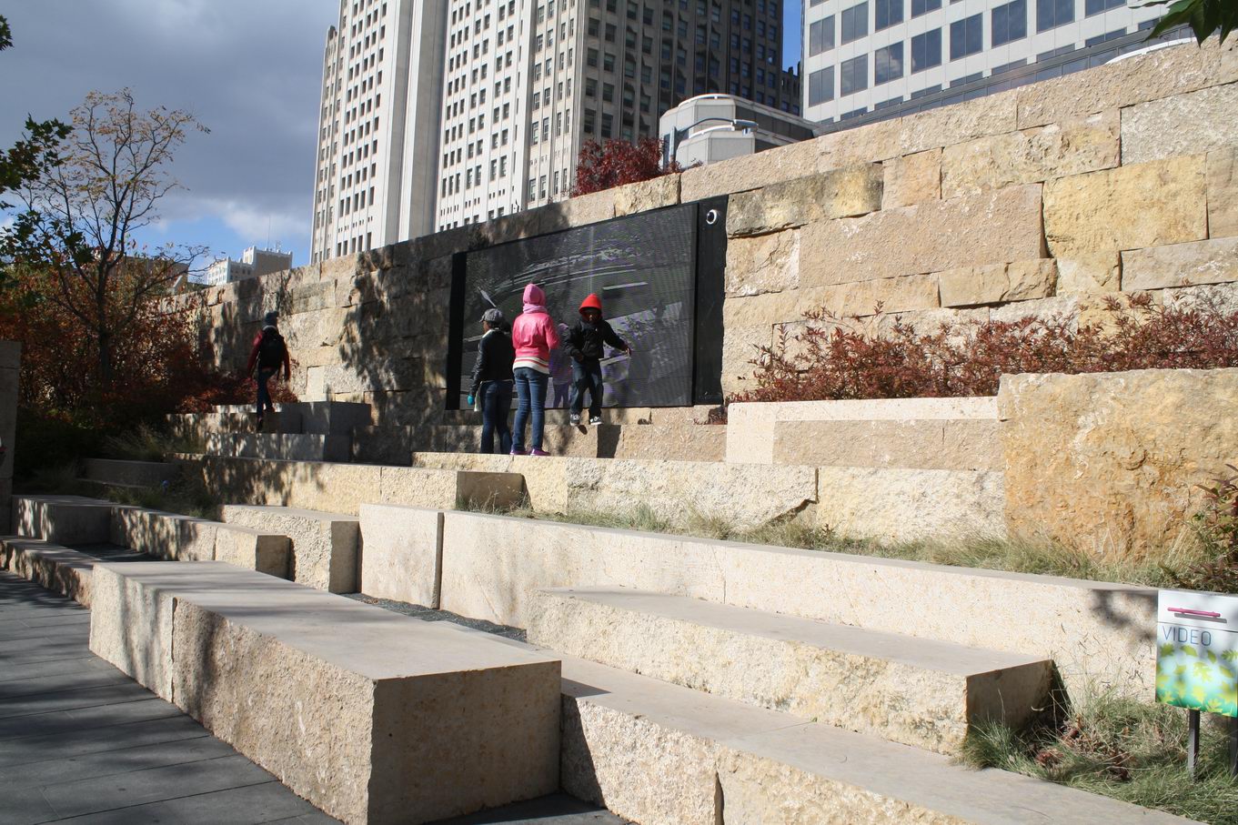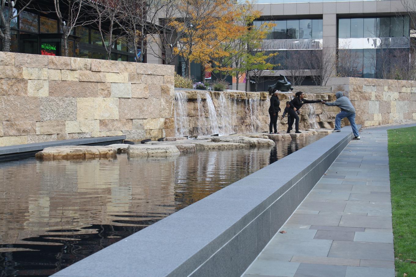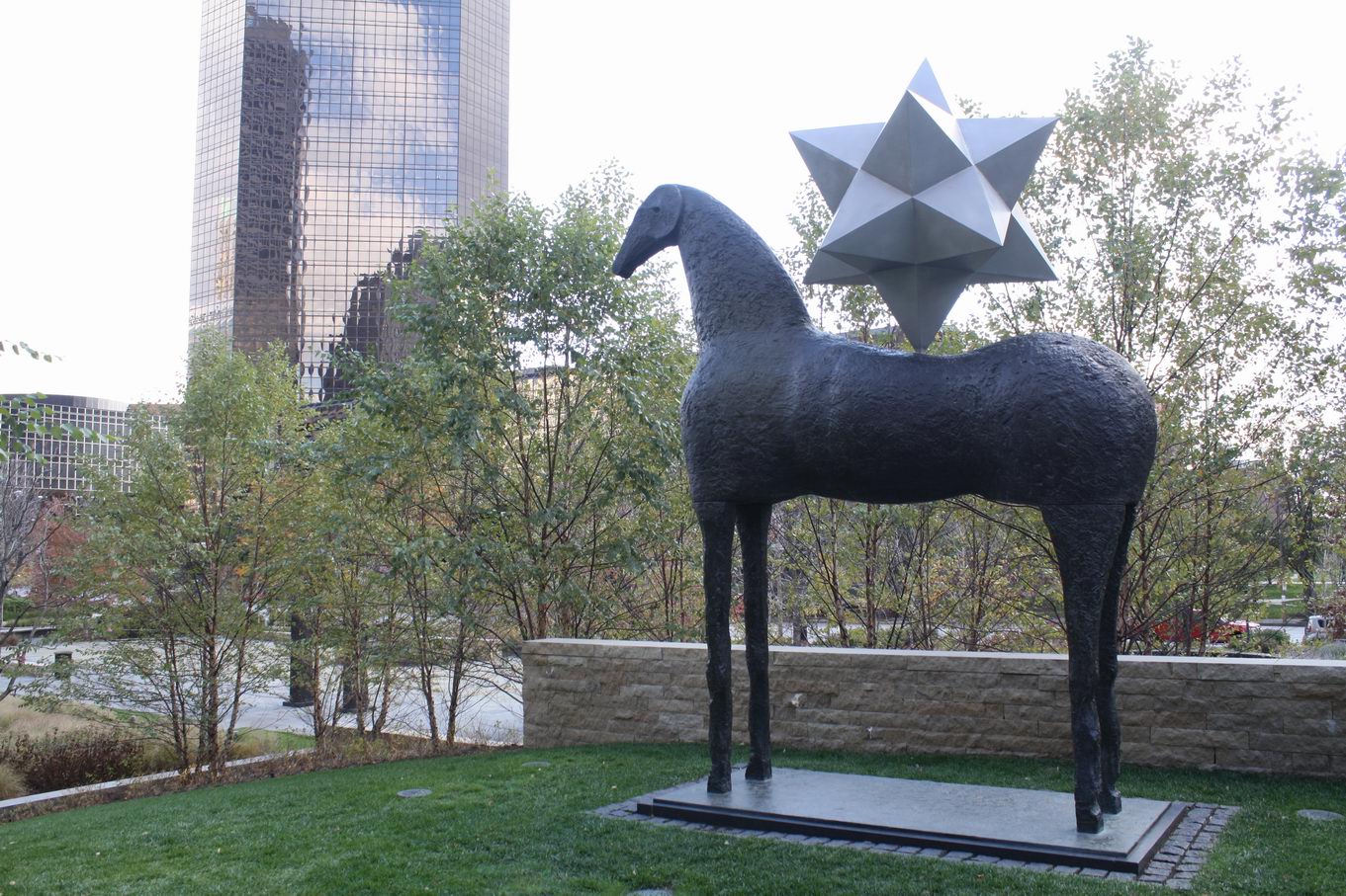 Citygarden is a relatively new (2009) sculpture park in downtown Saint Louis, Missouri, which I visited in late October of 2012. It encompasses two city blocks, and features over 20 works of art. The design of this park was inspired by the natural characteristics of the region’s river environments. Along the northern edge of the property, urban terraces represent river bluffs; the central, lower segment loosely depicts a flood plain; and a serpentine seat wall symbolizes a river as it winds along the southern section of the park. In addition, Citygarden has several sustainable features, including six rain gardens and a green roof on the park’s café.