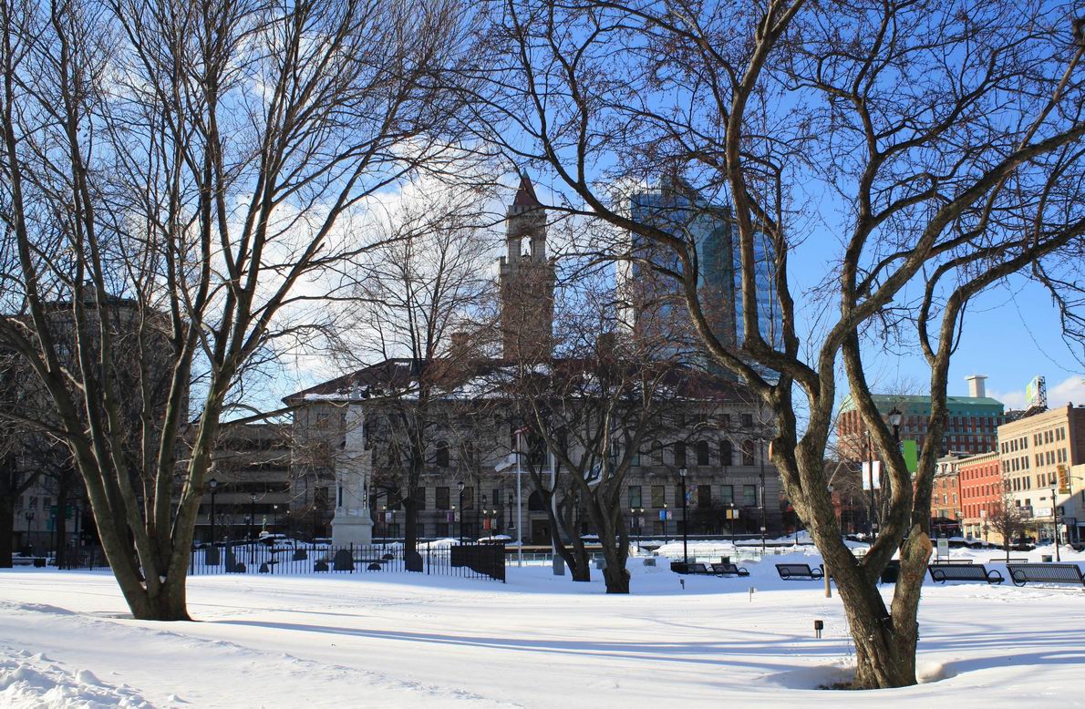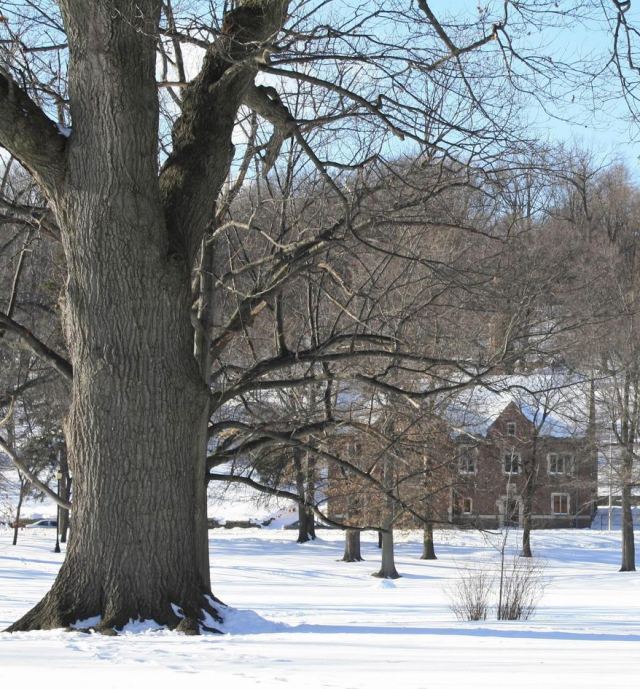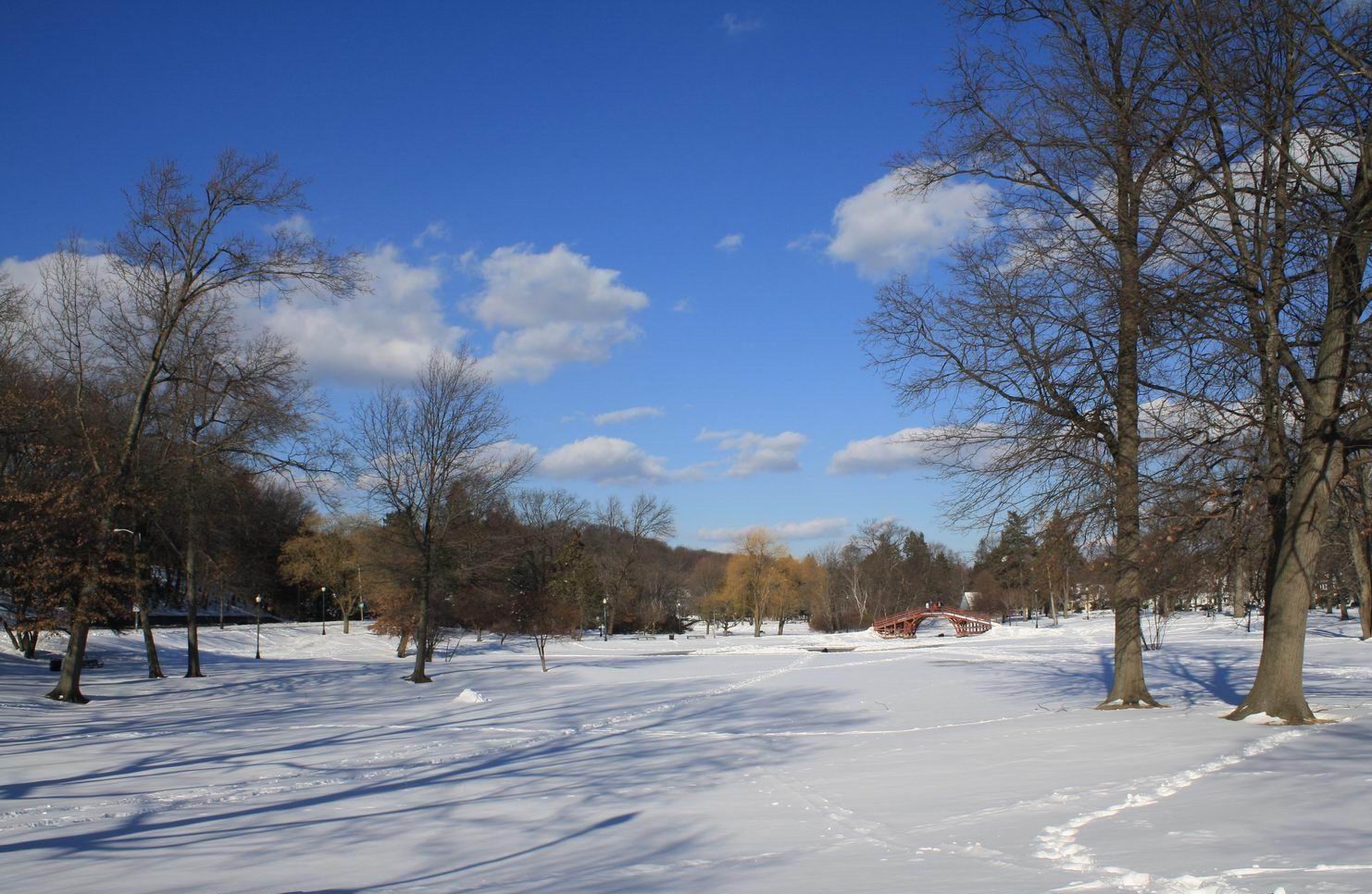 There is a serene type of beauty in the winter landscape, especially when the sun is casting long blue shadows across the snow. The absence of leaves on the deciduous trees also opens up views not seen during the warmer seasons. I decided to take photos of several city parks here in Worcester, Massachusetts, during this chilly but scenic time of year. Landscape architects designed (and/or redesigned) all of the parks pictured below.